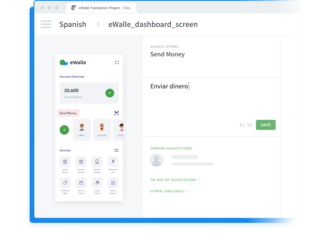 Ayuda a tus traductores o a la agencia para que hagan traducciones más relevantes y rápidas, envía tus diseños y contenido al proyecto de Crowdin.